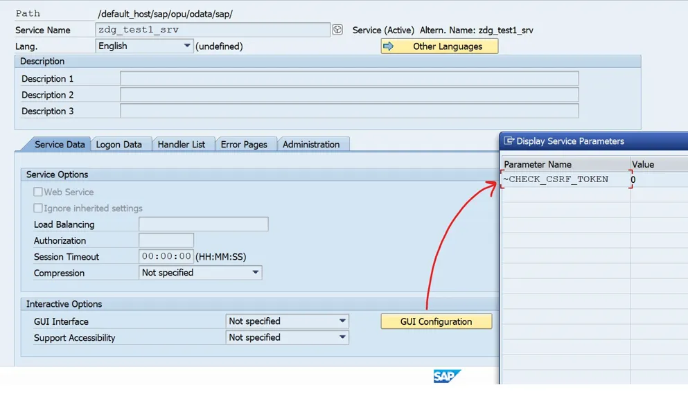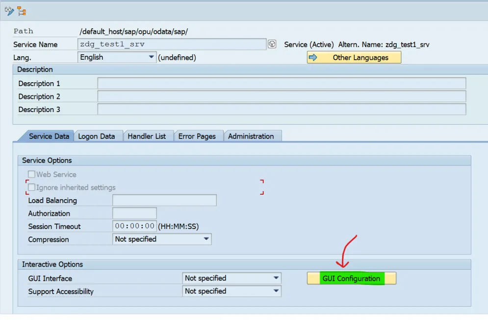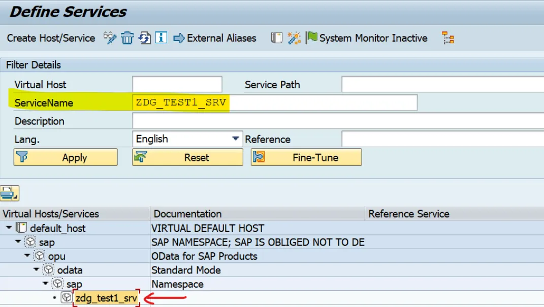 SICF path: /sap/opu/odata/sap/zdg_test1_srv