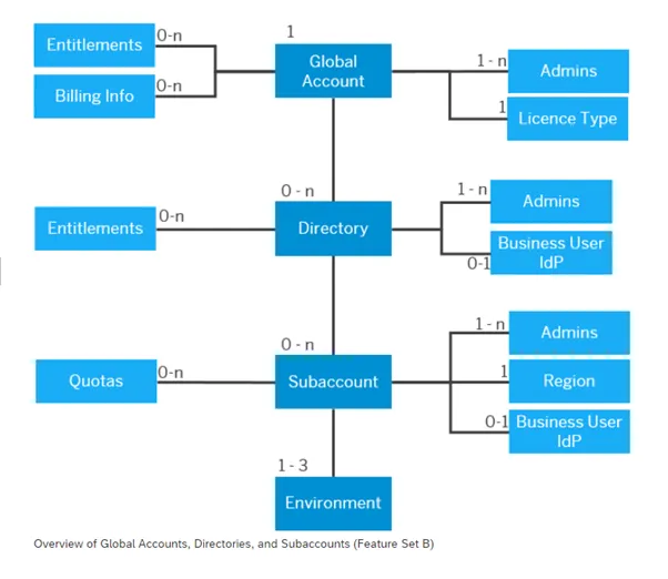 Directories (Feature Set B): Introduced in Feature Set B, directories offer a way to organize and manage subaccounts within your global account. Think of them as folders for grouping subaccounts based on shared characteristics, such as project type, department, or function. This allows for centralized management, easier operation, and improved analysis of resources within each group. More information on Feature Set B can be found in the documentation: [Cloud Management Tools — Feature Set Overview].